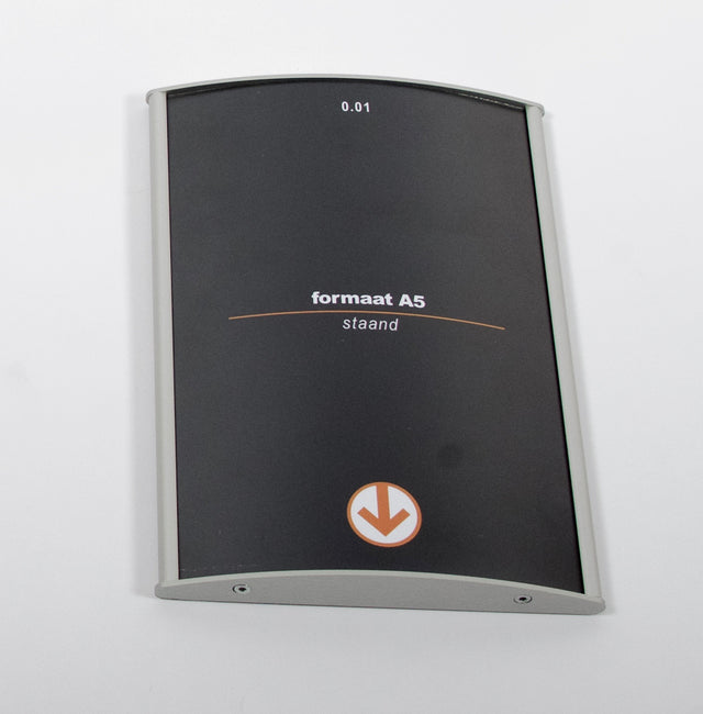 De Vista deurhouder is een licht gebolleerde aluminium houder standaard geleverd met een antireflexplaatje en voorzien van aluminium eindkappen. De eindkap is bevestigd aan de korte zijde en is zowel liggend als staand toepasbaar. De informatie is gemakkelijk zelf te wijzigen met papierinsert door middel van een zuignap. Optioneel leverbaar in zwarte of grijze eindkap
