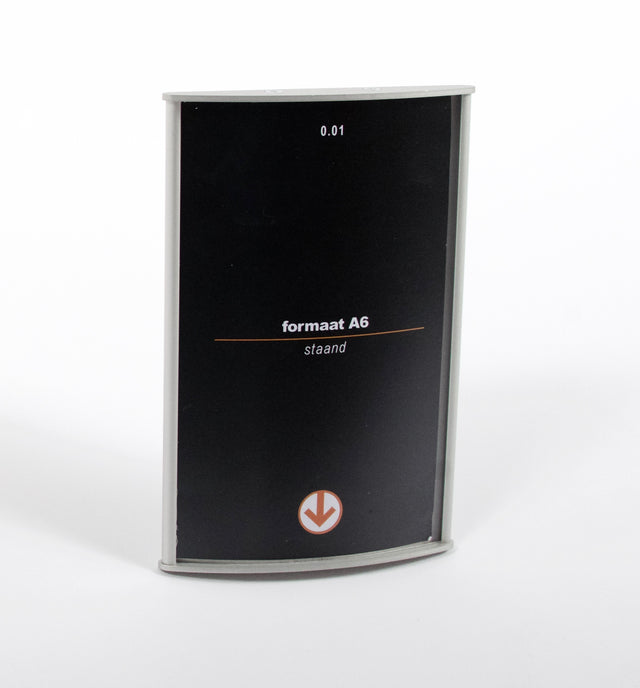 De baliehouder kangaroo is vrijstaand en voorzien van aluminium eindkappen. De papierinsert is eenvoudig door u zelf te wijzigen.