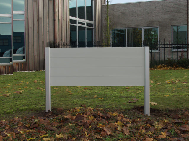 Aluminium geanodiseerd outdoor frame, staanders 80x80. Het frame is te voorzien van het gewenst aantal tekstpanelen naar keuze met een hoogte van 100 mm per paneel. Staanders 700 mm onder maaiveld. Voor afwijkende modellen graag mailen naar het algemene e-mailadres.