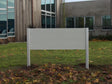 Aluminium geanodiseerd outdoor frame, staanders 80x80. Het frame is te voorzien van het gewenst aantal tekstpanelen naar keuze met een hoogte van 150 mm per paneel. Staanders 700 mm onder maaiveld. Voor afwijkende modellen graag mailen naar het algemene e-mailadres.