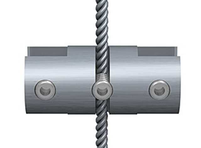 Dubbele klem ten behoeve van het bevestigen van 2 displays aan de spankabel.