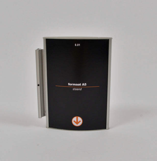Dit uithangbord is standaard uitgerust met aluminium eindkappen, waardoor ze een stijlvolle en moderne uitstraling hebben. Indien gewenst leverbaar met zwarte of grijze eindkappen. De informatie is gemakkelijk zelf te wijzigen met papierinsert door middel van een zuignap.