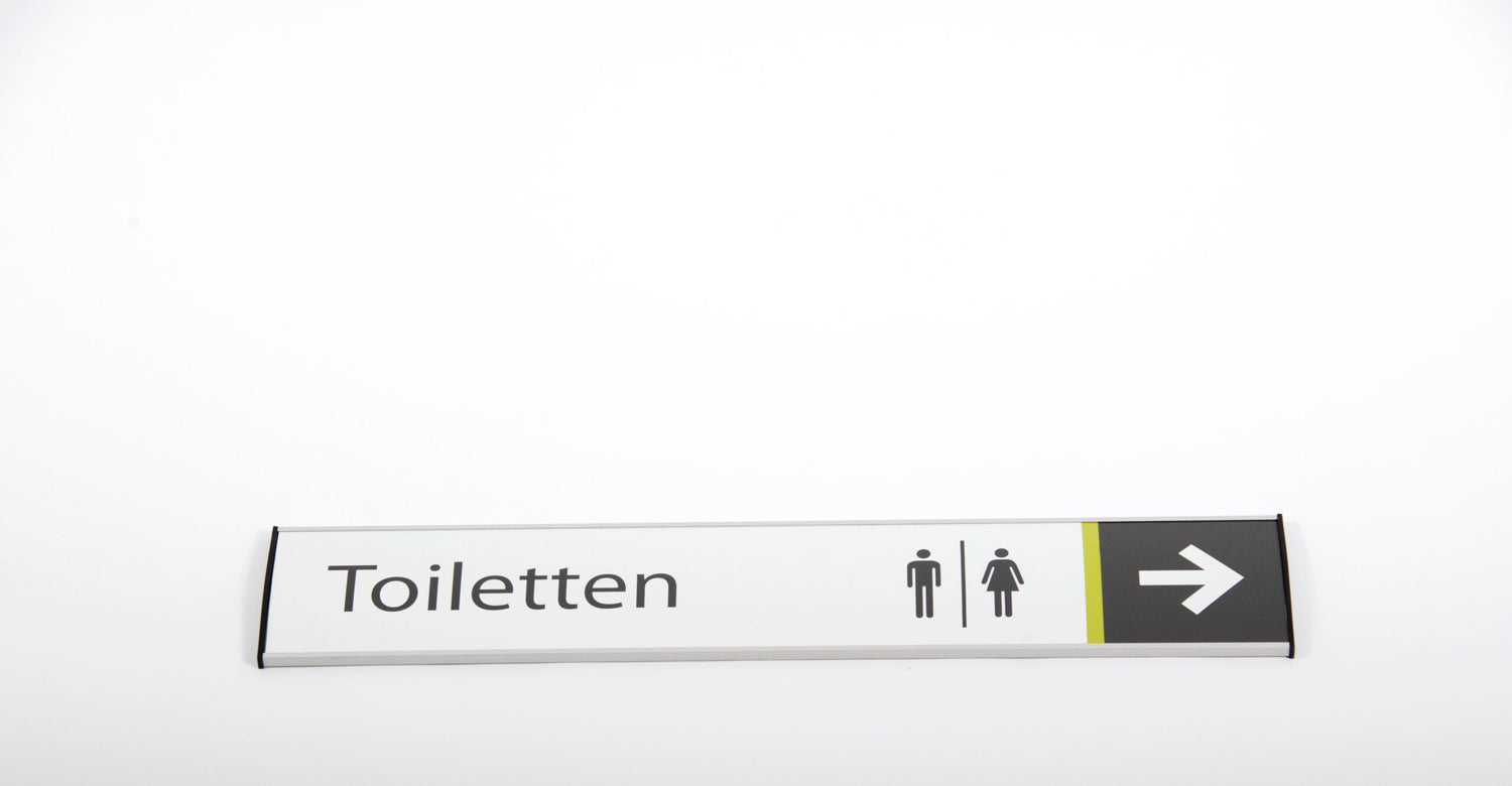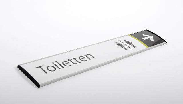 Geanodiseerd aluminium wandbord voorzien van aluminium of zwart/grijze kunststof eindkappen. Dit bord kan rechtstreeks worden voorzien van folie met de gedeeltelijke tekst en/of logo.
